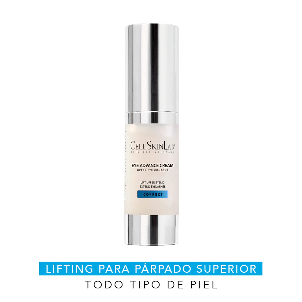 El Advance Lift Eye de CellSkinLab es una crema de textura gel sedosa diseñada específicamente para la delicada zona del contorno de ojos. Gracias a su innovadora combinación de activos como Beautifeye®, Widelashyl®, ácido hialurónico y glicerina, este tratamiento ayuda a reafirmar el párpado superior, fortalecer las pestañas y suavizar la apariencia de líneas de expresión. Su textura fresca y ligera hidrata sin dejar sensación grasa, haciendo que se integre de manera cómoda en la rutina dia o noche.